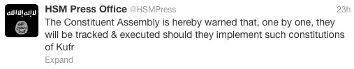 Al-Shabaab through its Twitter account and over its media outlet Radio Andalus recently stated that the group would execute any and all Somalis involved in implementing the “un-Islamic” new constitution, and this attack fits into this threat.