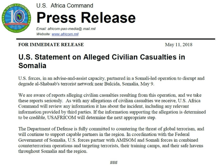 But it is insufficient for AFRICOM to call any negative portrayal of U.S. actions as simply “al-Shabaab propaganda.” In order to be perceived as a reliable communicator, AFRICOM has to maintain its credibility — which can only be achieved through accountability and transparency about its actions that go beyond cursory denials.