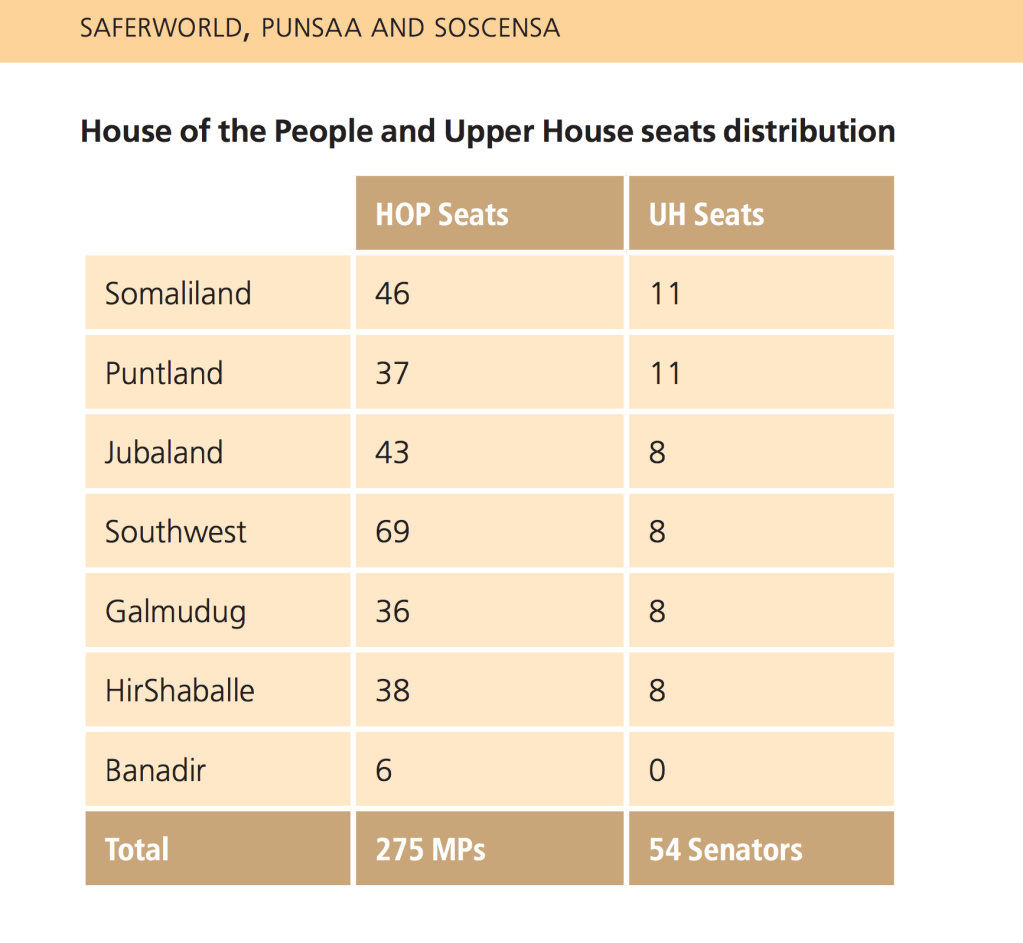 Would it be possible for the FGS and its allies to select a new government without Puntland, Jubaland and opposition candidates? The answer lies in part in the allocation of parliamentary seats per region and clan politics.